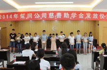 2014年8月22日,虹潤公司一年一度的“圓夢助學行動”捐資助學儀式在虹潤科技園辦公大樓四樓禮堂隆重舉行。順昌縣委副書記易才卿、順昌縣關工委主任黃春娣、順昌縣政協副主席黃為雄、順昌縣文體局局長李元生、團縣委書記吳詩源、順昌縣工會副主席蘭榮妹、虹潤公司董事長林善平以及相關部門領導出席了儀式。