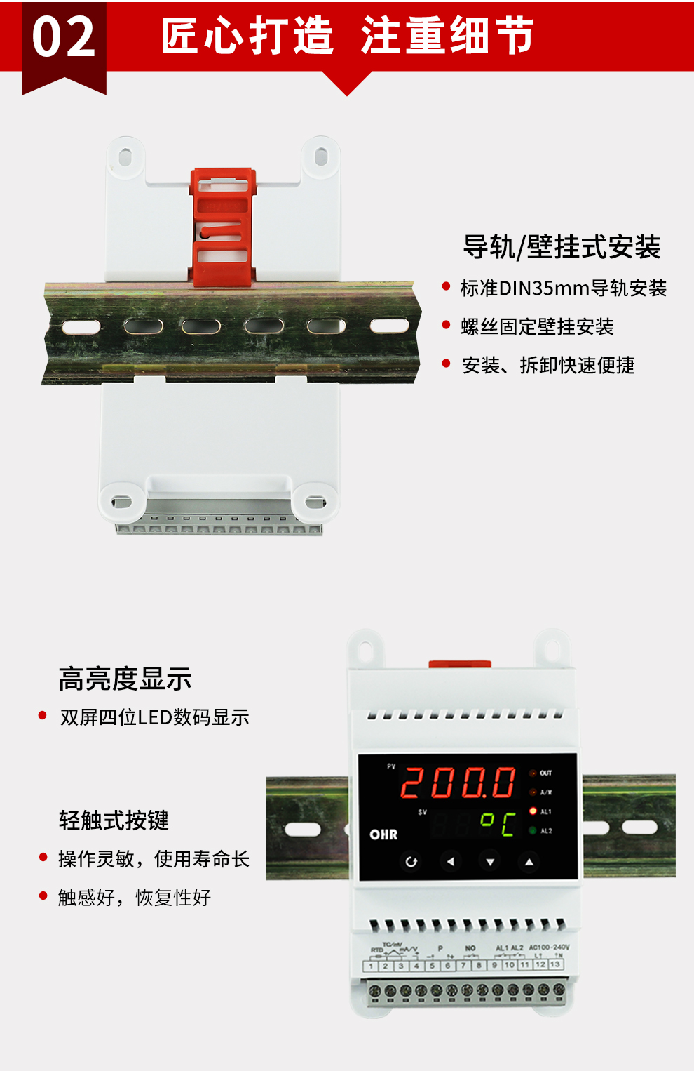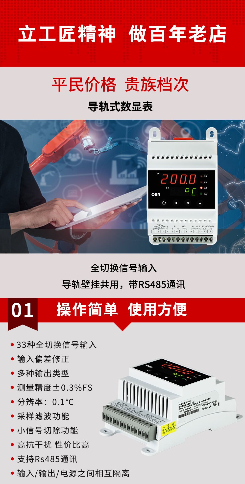 導(dǎo)軌式數(shù)字顯示控制儀采用了表面貼裝工藝,全自動貼片機(jī)生產(chǎn),具有很強(qiáng)的抗干擾能力。可對溫度、壓力、液位等工業(yè)過程參數(shù)進(jìn)行測量、顯示、報(bào)警控制、變送輸出、數(shù)據(jù)采集及通訊。