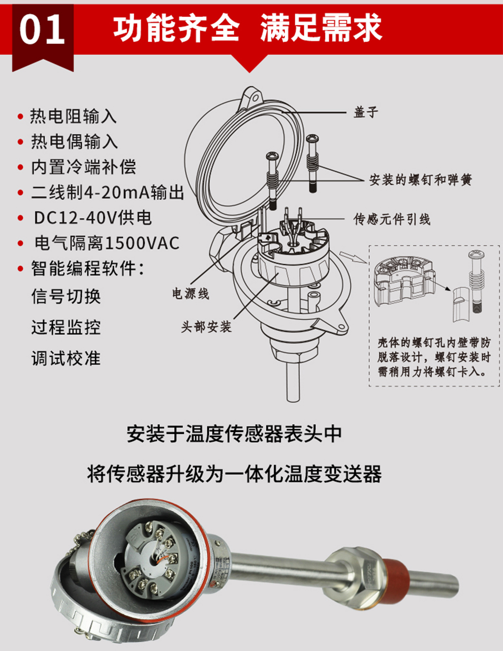 • 溫度變送器將現場的熱電阻或熱電偶等溫度傳感器信號經過隔離放大處理,轉換為與溫度成線性的二線制4-20mA信號輸出至控制系統。