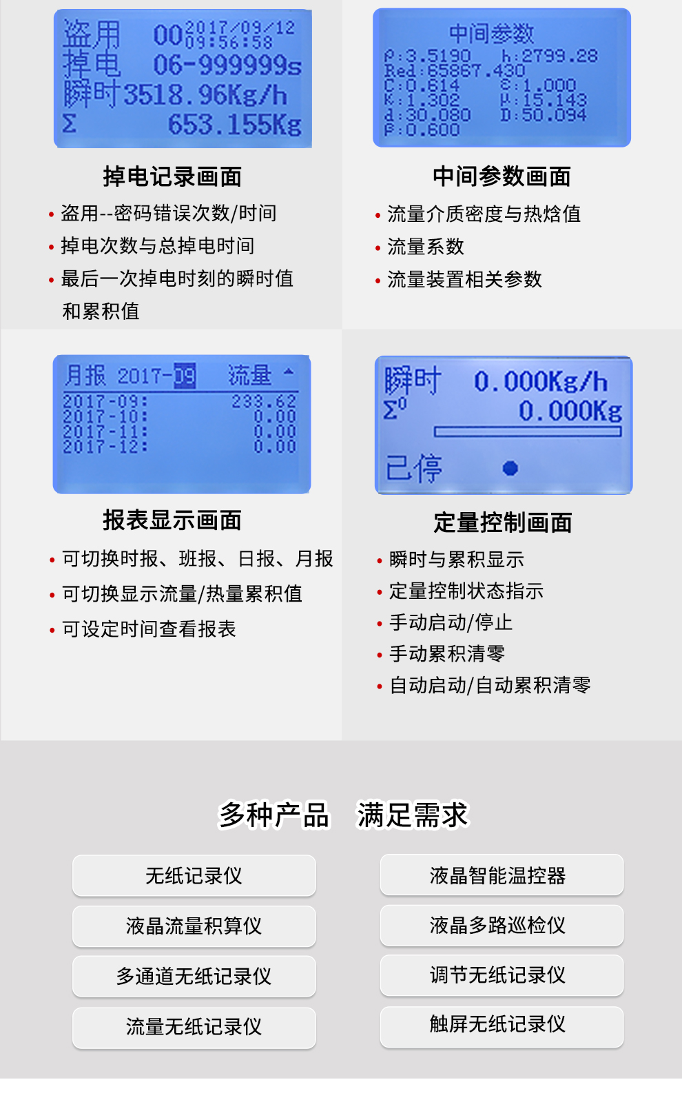 “傻瓜式”液晶流量積算儀接收來自流量傳感器信號(hào)(差壓、脈沖等)、溫度、壓力傳感器的補(bǔ)償信號(hào)實(shí)現(xiàn)對(duì)氣體、熱水和蒸汽流量進(jìn)行過程監(jiān)測(cè),總量累積及定量控制。