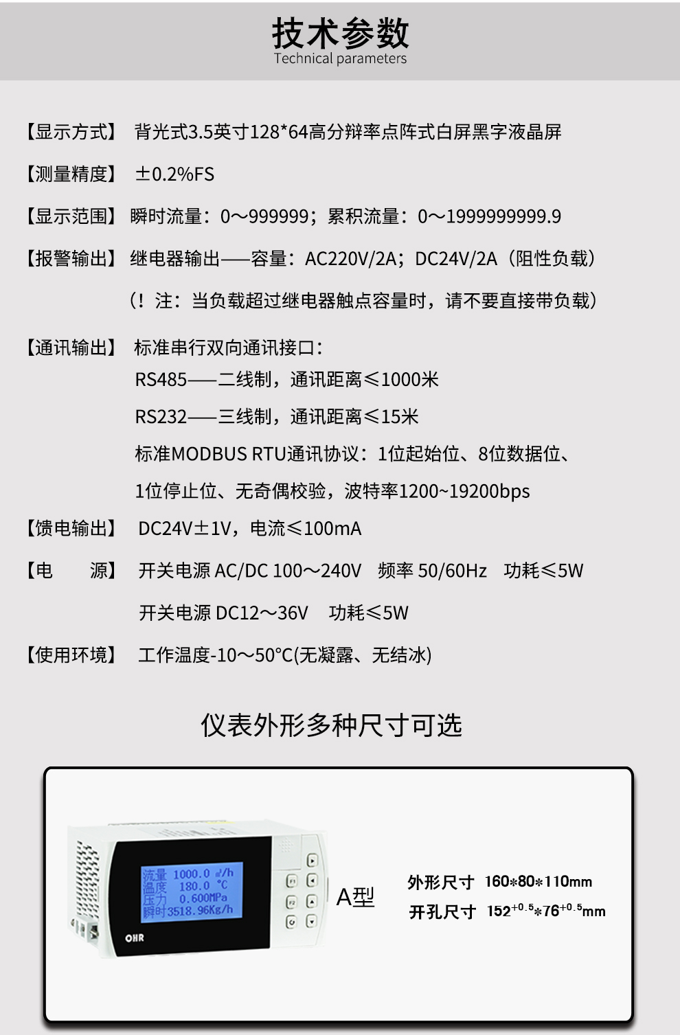 OHR-F660系列“傻瓜式”液晶流量積算儀