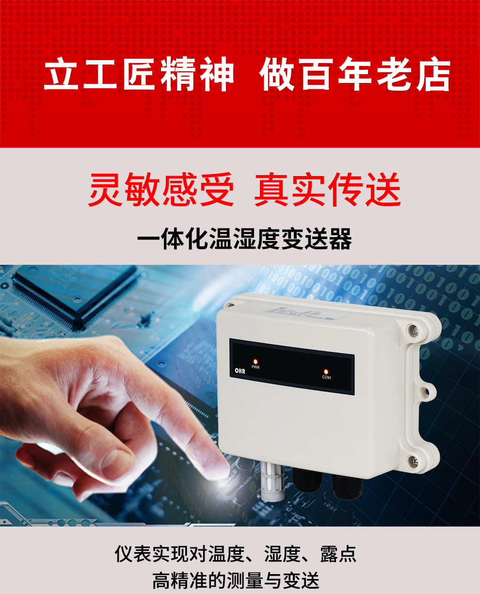 • 一體化溫濕度變送器電路采用進口微處理器芯片、進口高精度溫濕度傳感器,確保溫濕度變送器優異的可靠性。它具有精度高、穩定性強、響應速度快等特點,可同時對被測環境的溫度、濕度進行測量和控制。適用于通訊機房、辦公室、醫院、檔案館、博物館、賓館、樓宇自控等場所的溫濕度測量。
