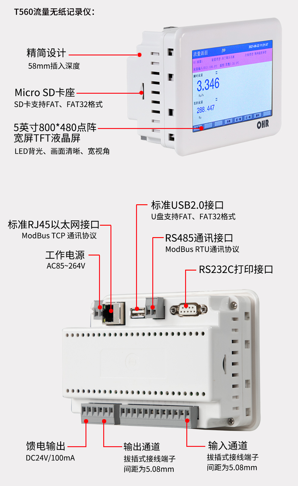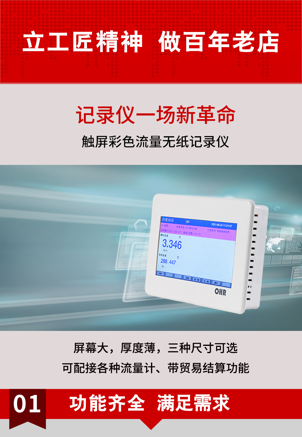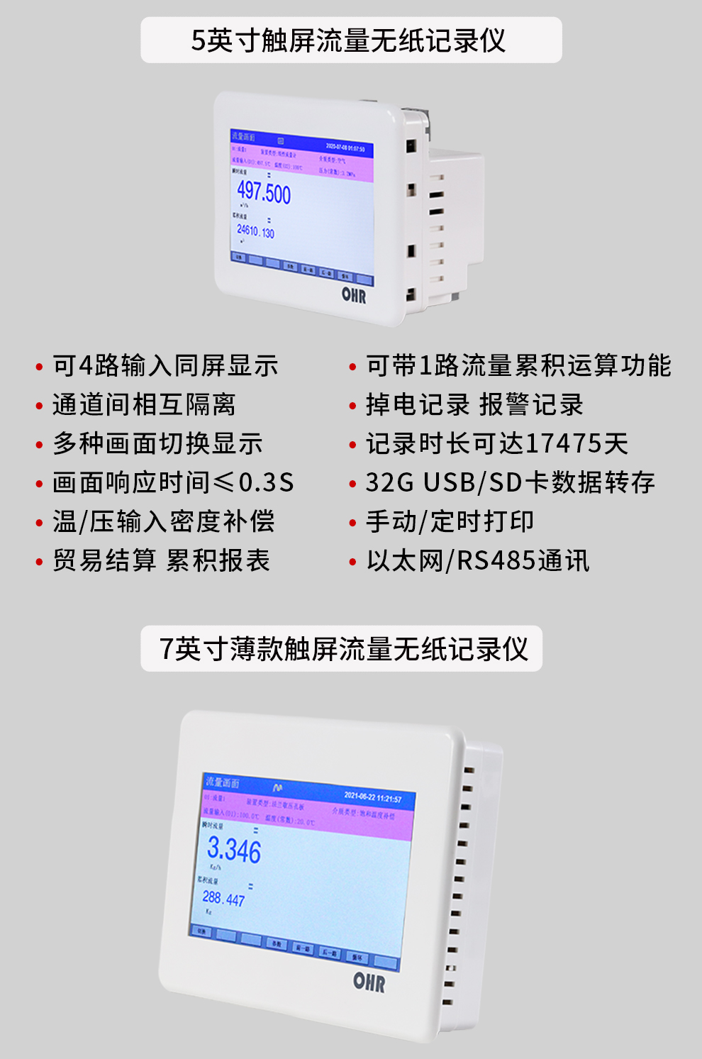 OHR-T系列薄款觸摸彩色流量無紙記錄儀