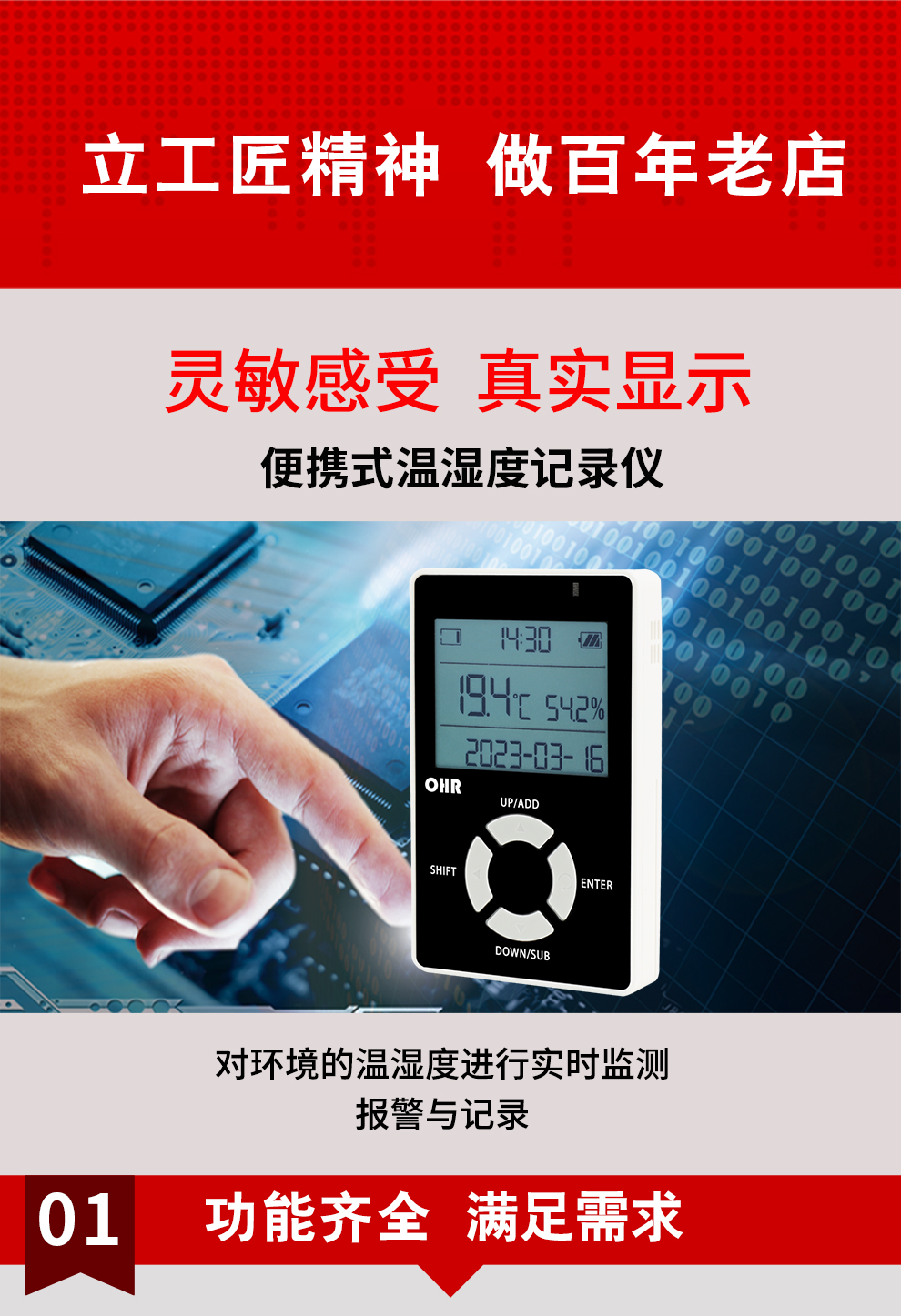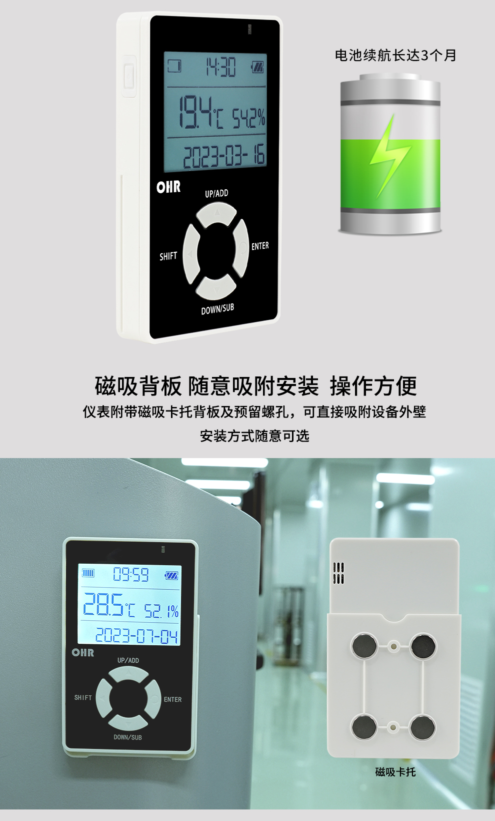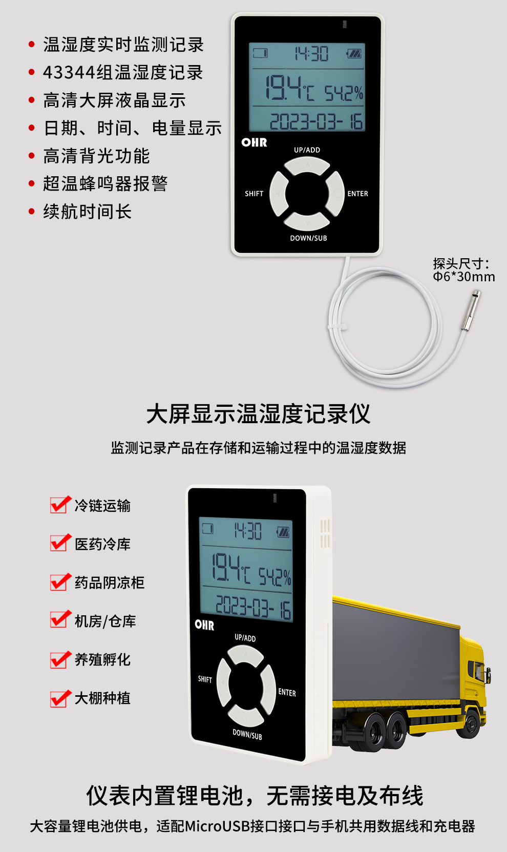 • 便攜式溫濕度記錄儀對環境的溫濕度進行實時監測、報警與記錄。