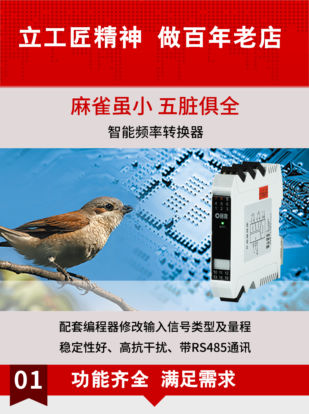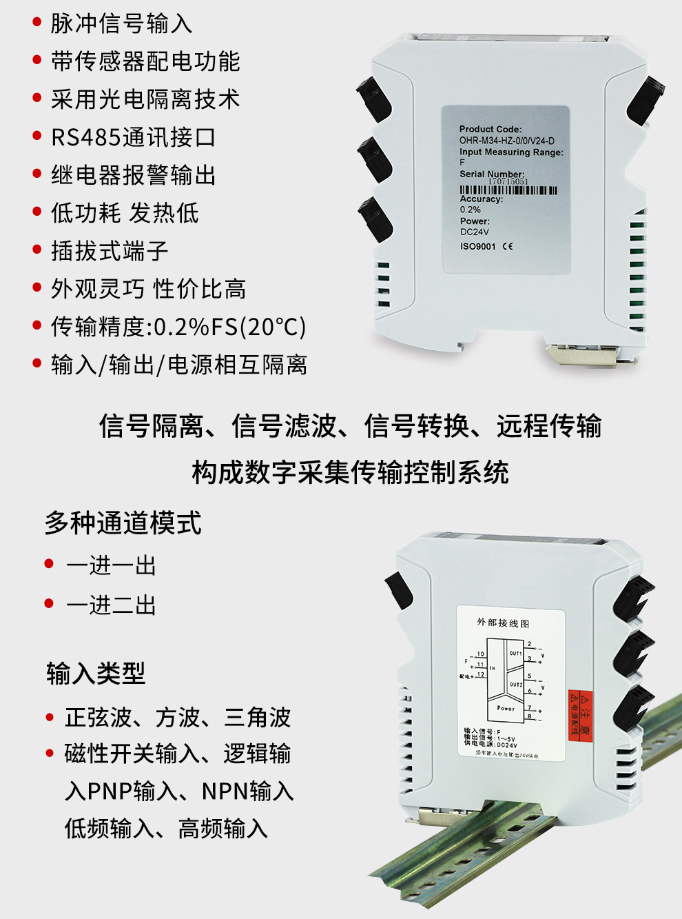 • OHR-M34系列智能頻率轉換器將頻率信號經隔離整形放大后,變送隔離輸出所需的信號,也可向現場的一次儀表提供電源回路。