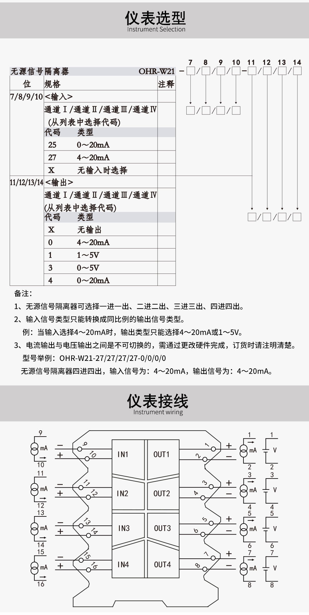 • 產品型號: OHR-W21-27/X/X/X-0/X/X/X(一進一出)
