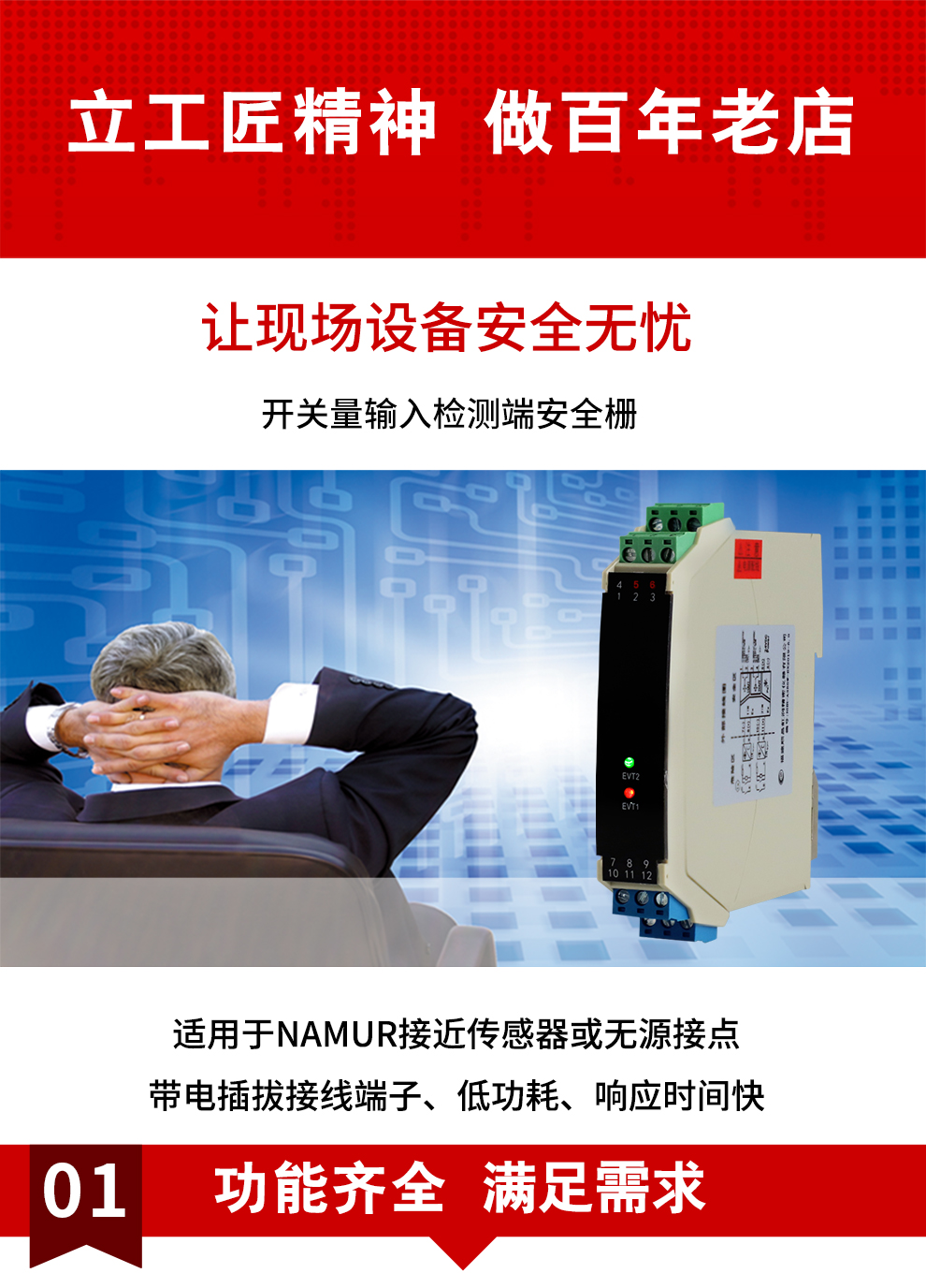 OHR-A35系列開關量輸入檢測端隔離柵接受來自危險區的開關或接近開關輸入,通過安全柵隔離輸出到安全側的繼電器或晶體管輸出,它具有輸入狀態檢測指示,可進行正反向控制,該產品需獨立供電,輸入/輸出/電源三隔離。