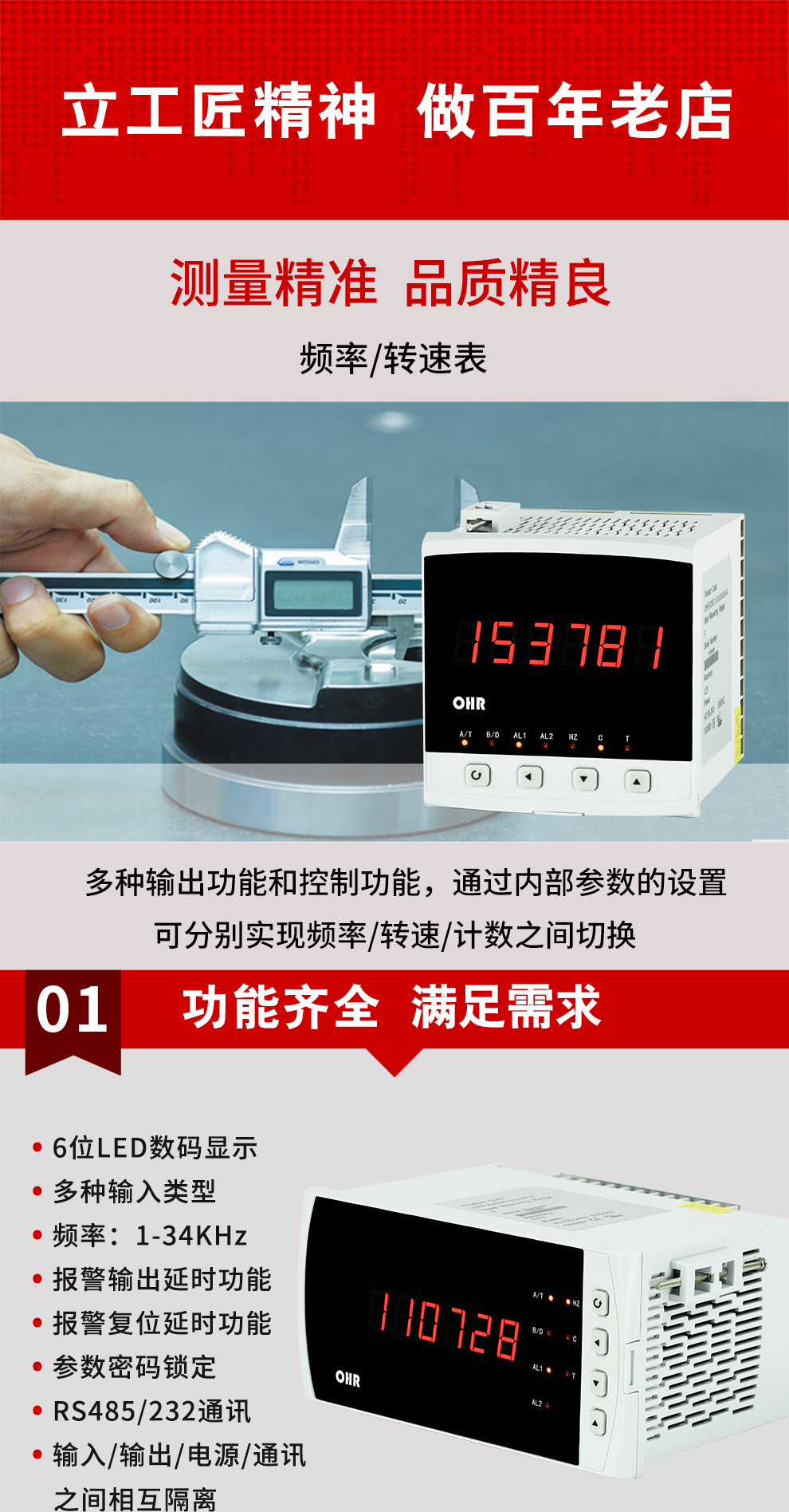 OHR-B400系列頻率/轉(zhuǎn)速表采用全自動(dòng)貼片封裝工藝,具有很強(qiáng)的抗干擾能力,并具有多種輸出功能和控制功能,與多種轉(zhuǎn)速傳感器配套,廣泛運(yùn)用于電力、石化、冶金、輕工、制藥、航空等諸多領(lǐng)域。